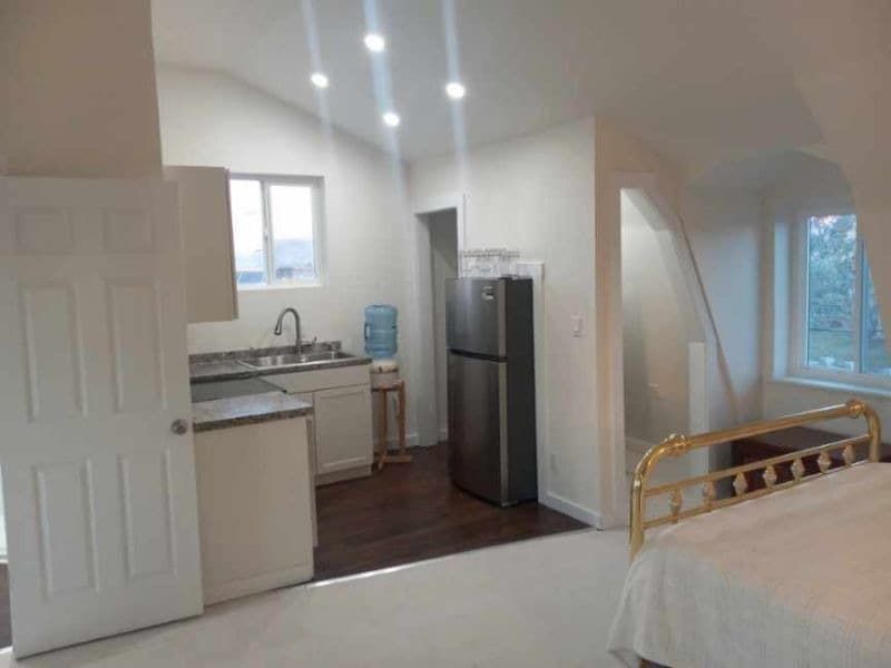 The studio kitchen has dishwasher, refrigerator, stove, oven, microwave and pantry. The bathroom has a shower, sink and toilet plus stacked washer/dryer. There is a large screen TV in the common area, two overhead fans with lights, hvac and dining area. Ask about pricing and availability.