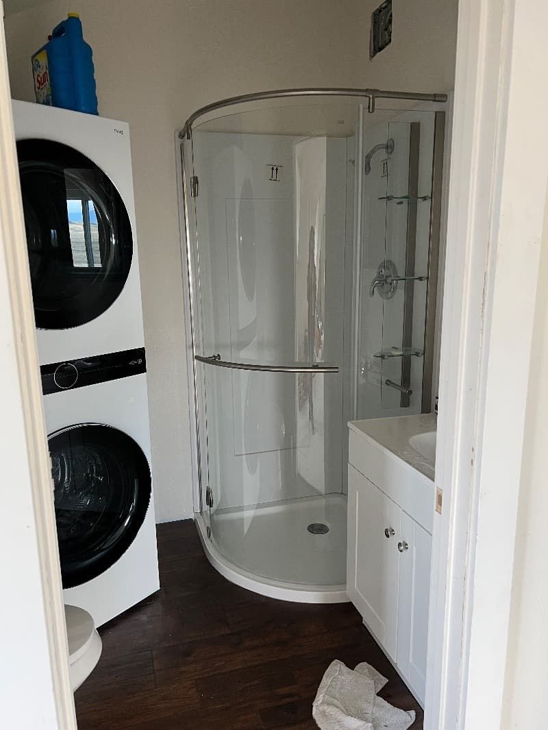 The master bedroom has a comfy California king bed, closet, and ensuite shower. There are also two other bedrooms in this house with hardwood floors. One bedroom has queen bed plus double bed. The other bedroom has two double beds. The brand-new bathroom has state of the art shower and oversize bath so that you can relax in style.